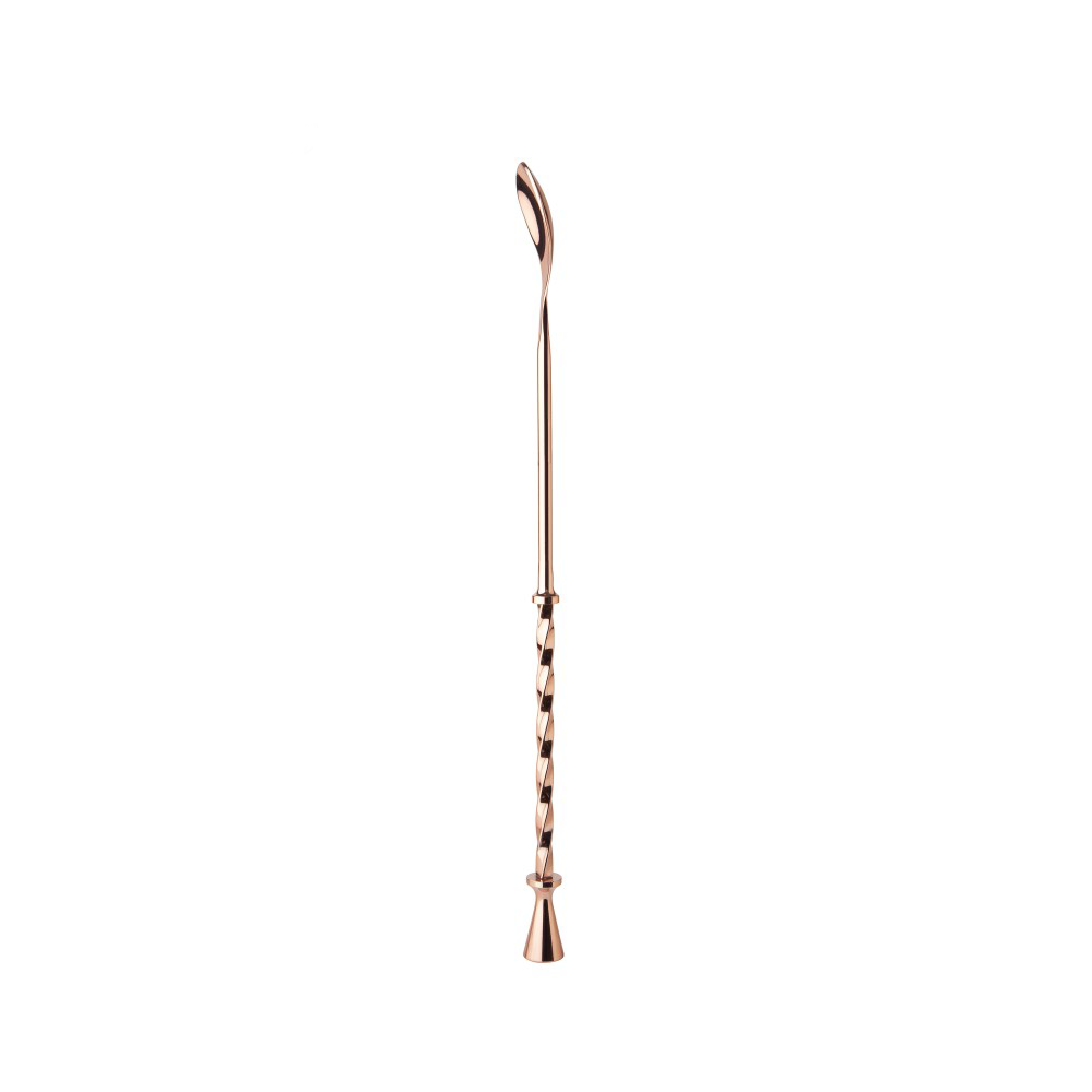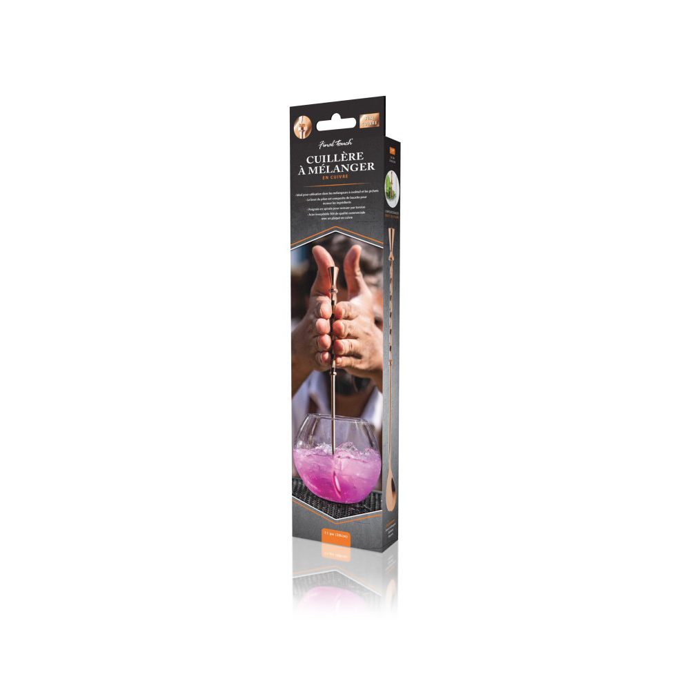 Cette cuillère à cocktail est couramment utilisée par les barmans pour mélanger et superposer les cocktails. Mesurant 28 cm de long, elle vous permet d'atteindre le fond du pichet, du verre ou du shaker le plus haut pour mélanger les ingrédients uniformément. Son manche spiralé permet de remuer en tournant, tandis que son extrémité plate permet d'écraser les ingrédients.
