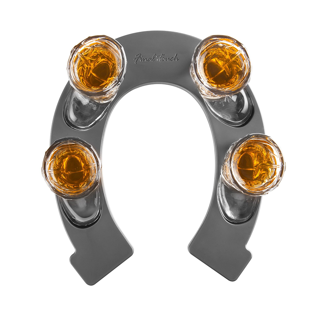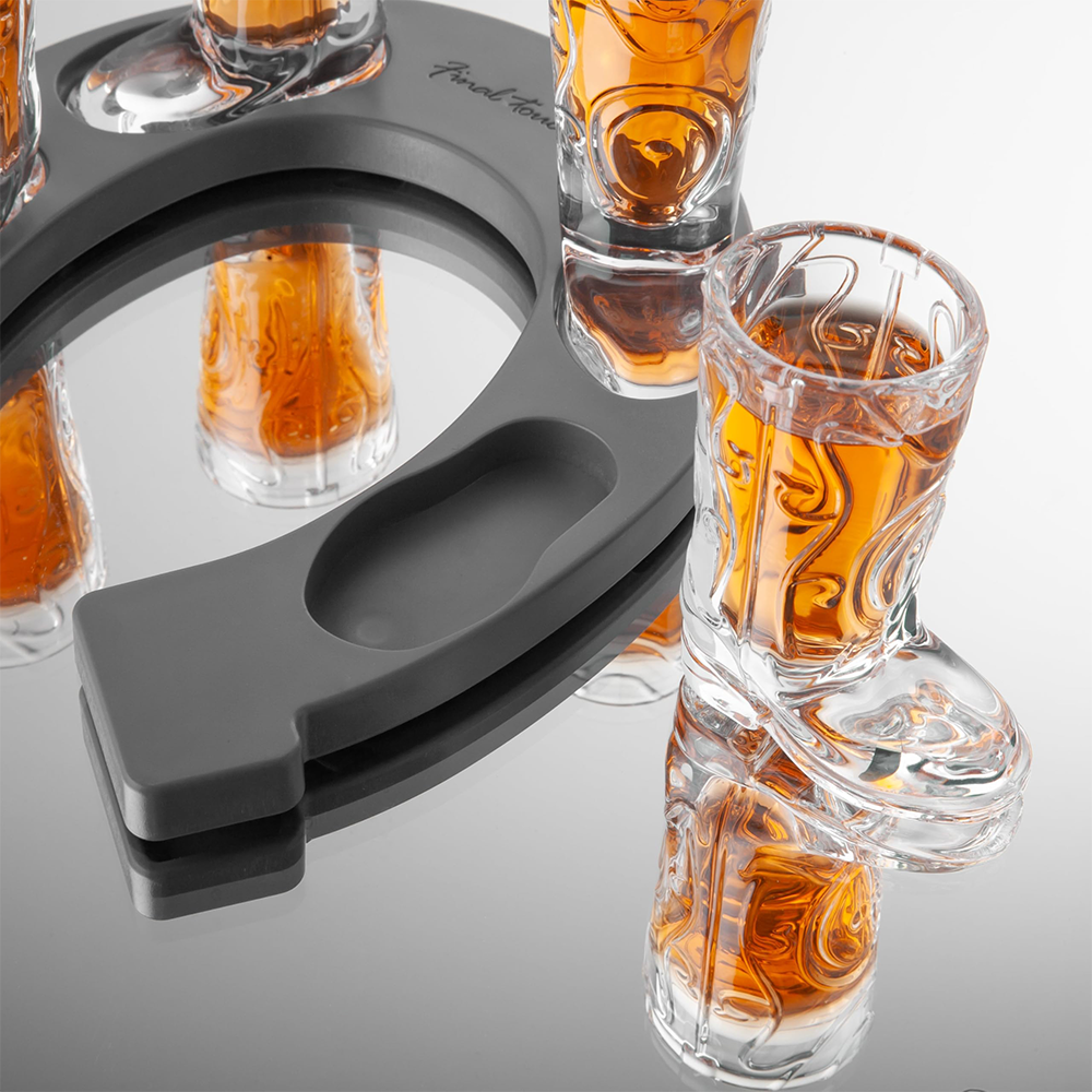 Ajoutez une touche western à votre prochaine réception avec le coffret de verres à shot Horseshoe Boot. Ce coffret comprend quatre verres à shot de 30 ml, chacun en verre épais et résistant, au design western classique. Le plateau de service léger en forme de fer à cheval est doté de pieds antidérapants pour une manipulation aisée et une bonne stabilité. Parfait pour servir du whisky, de la tequila, du bourbon ou tout autre shot de fête, ce coffret est un ajout amusant et pratique aux barbecues, fêtes ou réunions informelles.