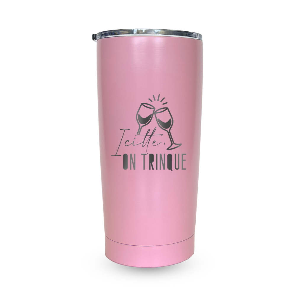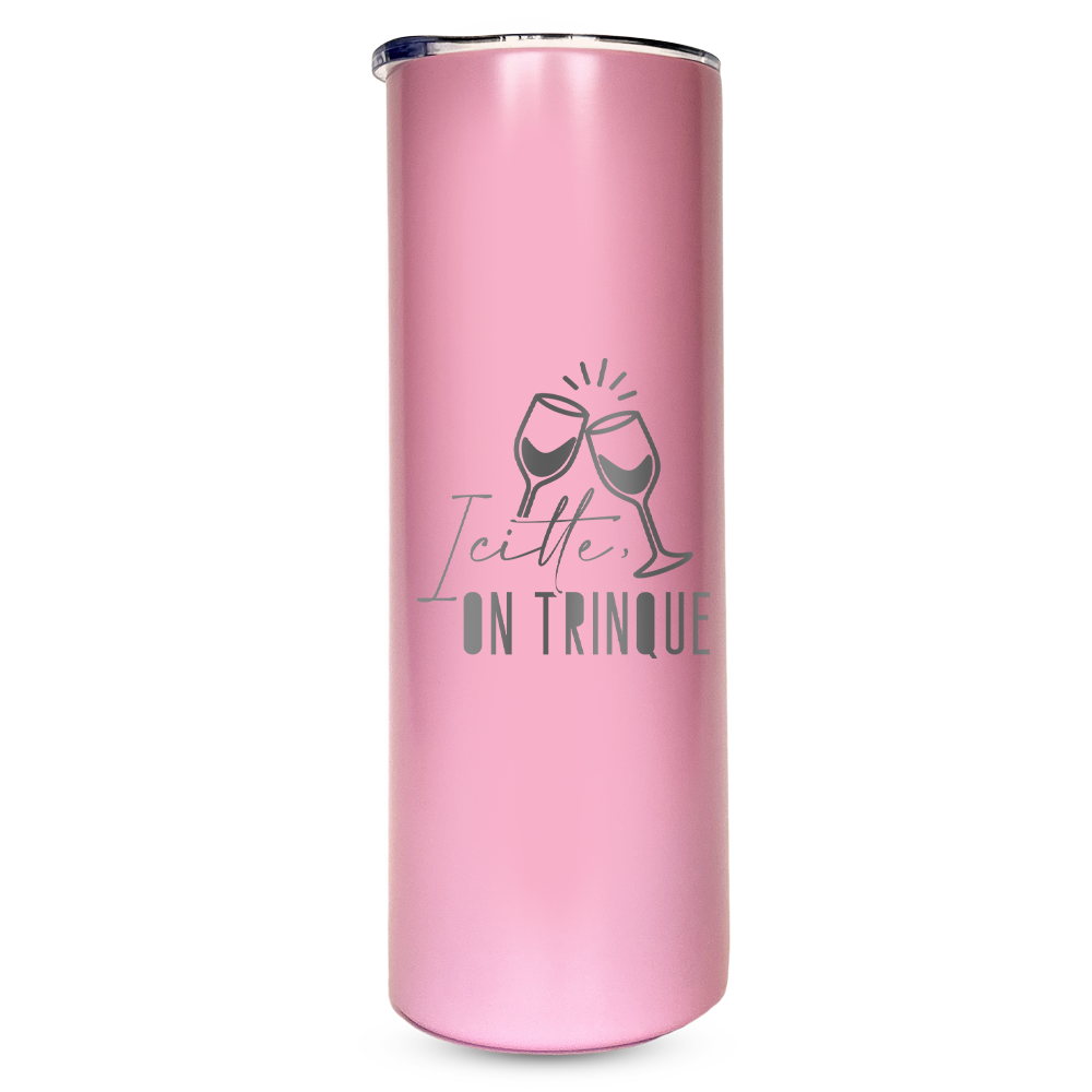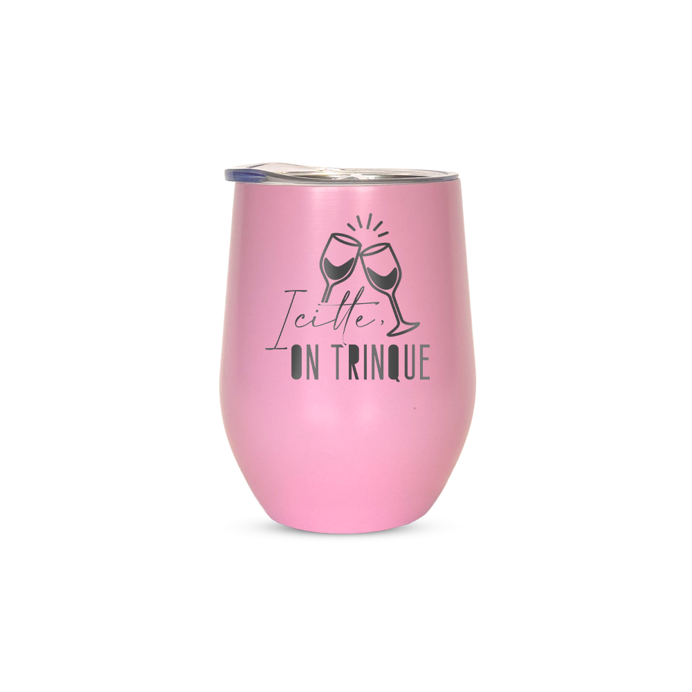 Gravure au laser avec inscription « Icitte, on trinque »