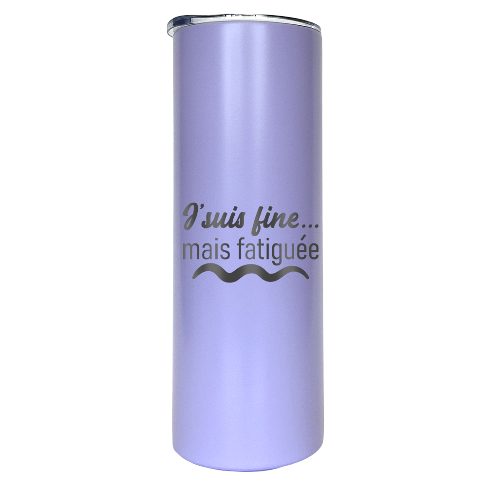 Gravure au laser avec inscription « J'suis fine... mais fatiguée »