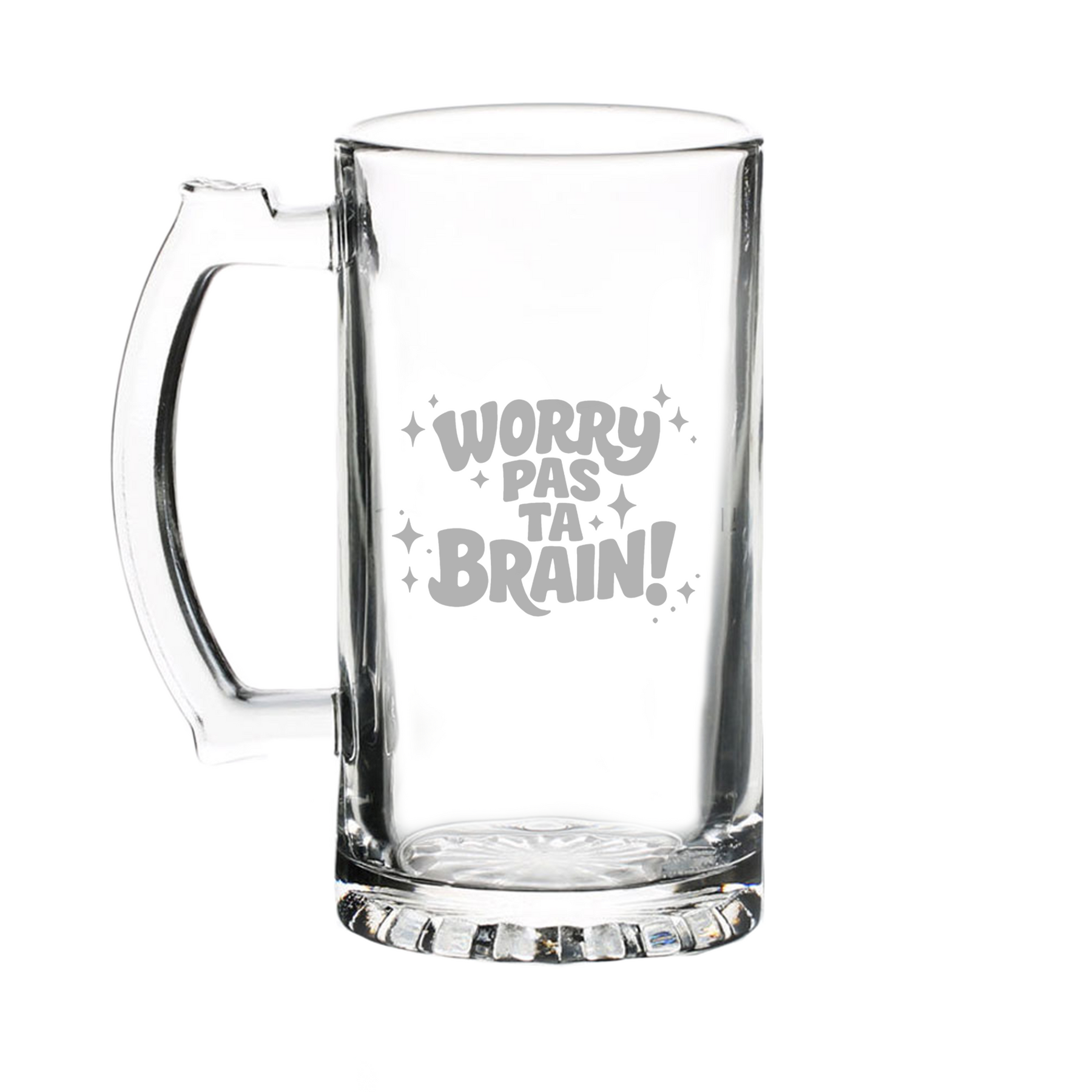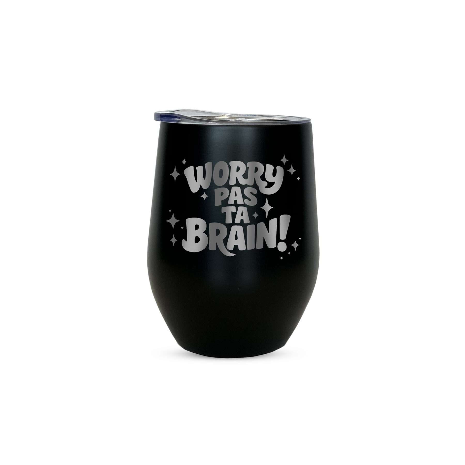 Gravure au laser avec inscription « Worry pas ta brain! »