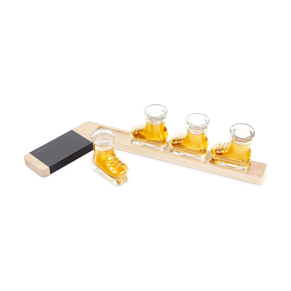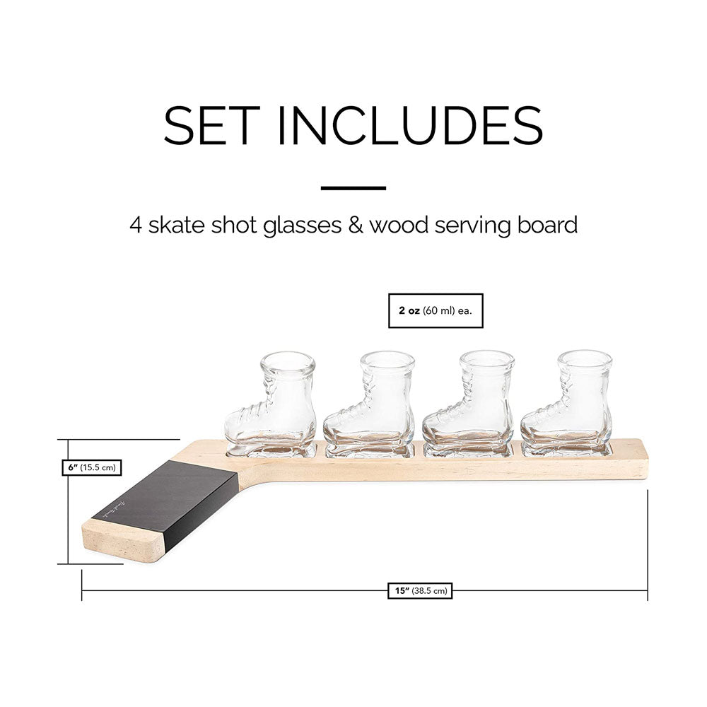 Comprend : 4 verres à shot et un plateau de service pour bâton de hockey en bois massif avec un tableau noir | Dimensions : 39,8 x 15,5 x 8,3 cm | Capacité : 60 ml | Matériau : verre et bois | Lavage : planche à ailettes de hockey : nettoyage avec un chiffon humide. Verres à shot : passe au lave-vaisselle (panier supérieur).