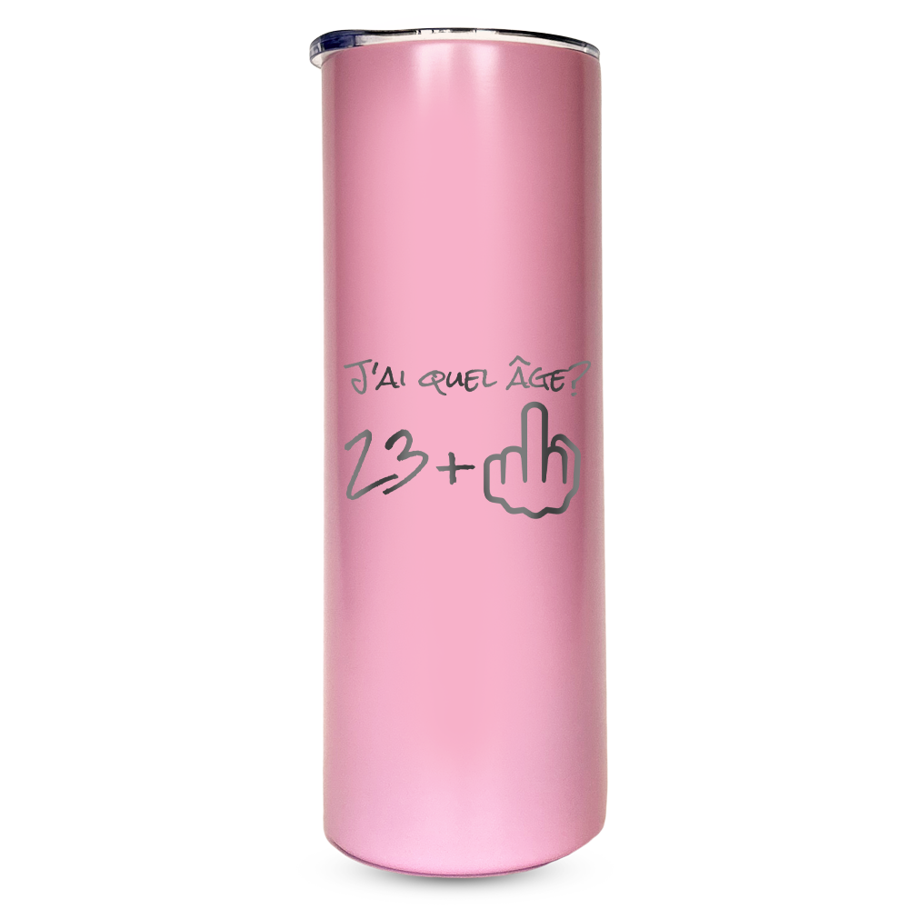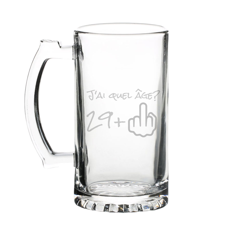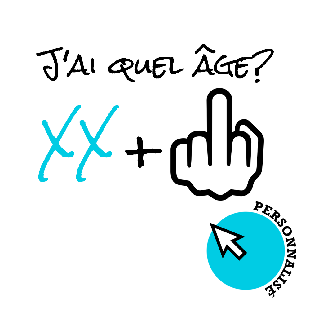 Gravure au laser avec inscription J'ai quel âge? AGE + 🖕 et ajoutez-y l'âge de votre choix. Exemple vous soulignez un 25e anniversaire, le calcul devrait être le suivant : 24 +🖕