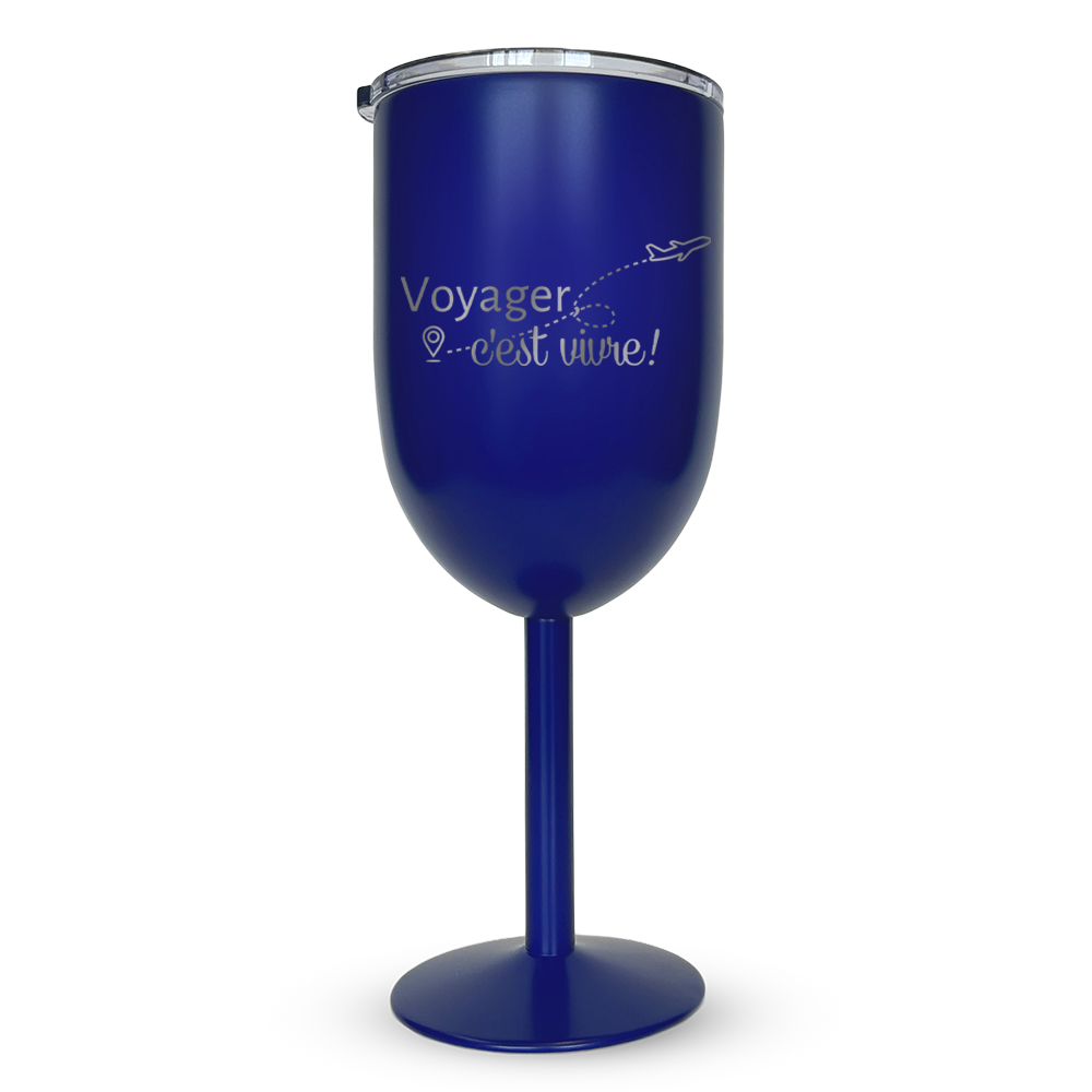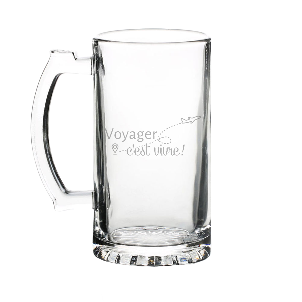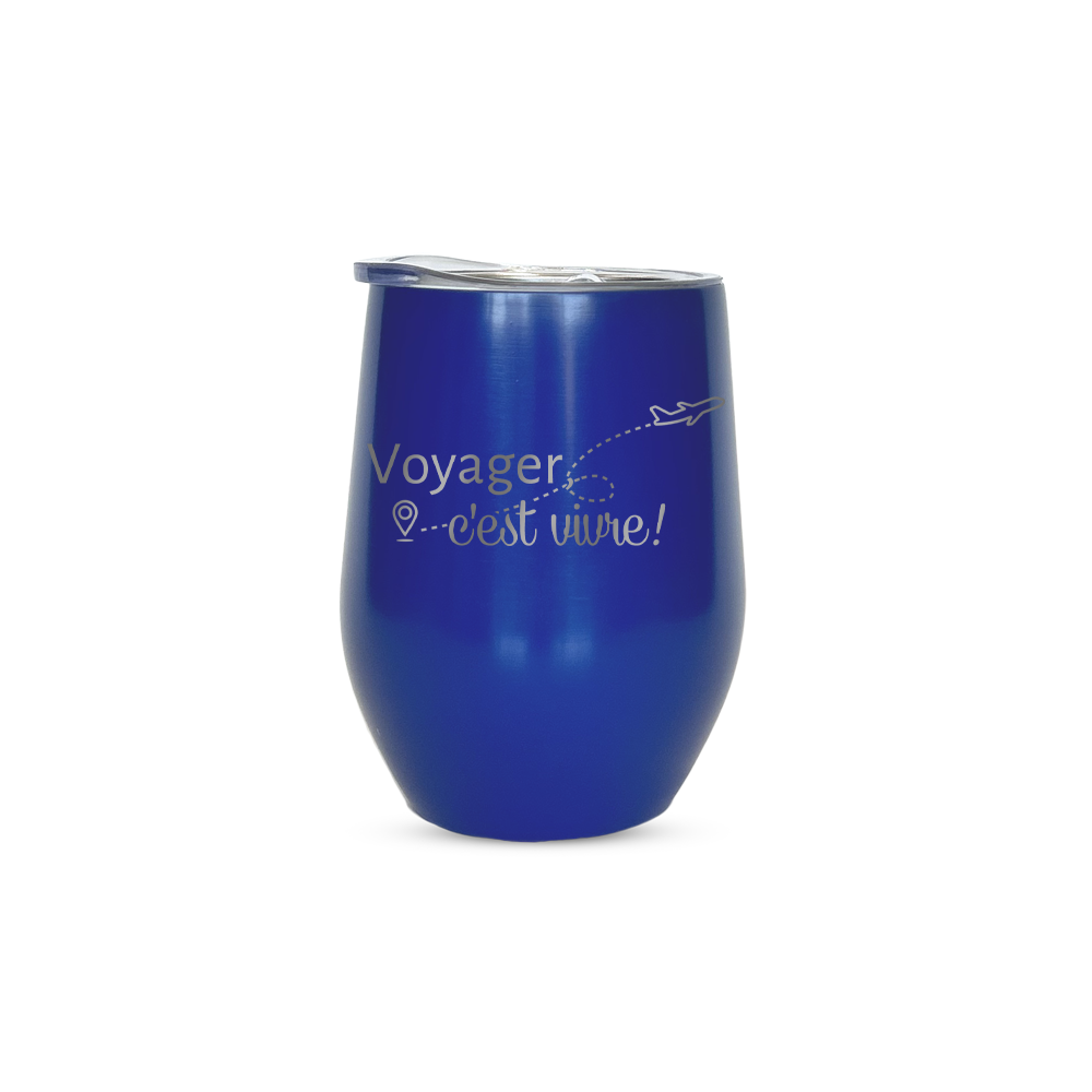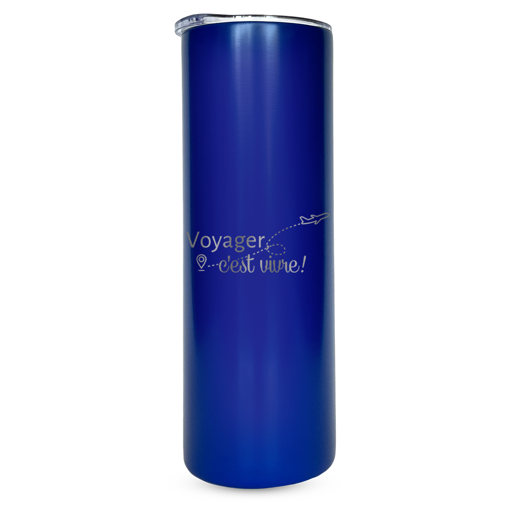 Gravure au laser avec inscription « Voyager, c'est vivre! »
